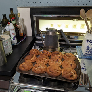 The muffins were pretty easy too. I started by turning my oven on to preheat to 425. Then I began pitting and halving a little over two cups of fresh cherries. I diced 4 dried nectarine halves and added them to the cherries and set them aside. In a mixing bowl I combined some ghee, two eggs, some sour cream, milk, brown sugar, salt, and baking powder. I don't measure, so I don't know how much of everything I use. It's kinda by muscle memory. I just know how it should look and feel. Once the first round of ingredients was well combined I started to add the masa harina until it was a little thicker than cake-batter. Then I added a dash of St. Germaine and the fruit and filled a greased muffin pan with the batter. I baked them for 45 minutes at 425. They came out tender, sweet, and lovely...just like my bum used to be when I was younger. ANYWAY... the muffins are inspired by traditional Mexican sweet tamales and are made this time of year when the first cherries are picked for the season. My muffins are baked, but tamales are steamed. It gives the masa a different texture...more like a dense sponge cake. If you try this out I hope you enjoy.